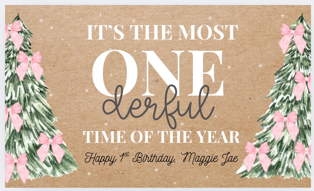 • Phrase and Saying: “ it’s the most ONEderful time of the year happy first birthday, Maggie Jae”
